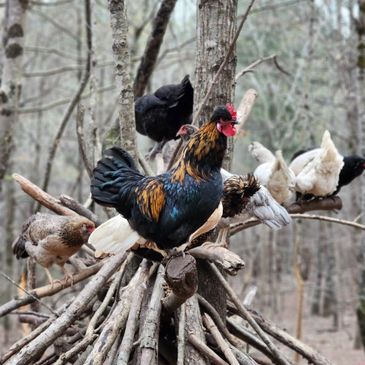Forest raised chickens are raised in a system that allows them to live and forage within a wooded environment, rather than on open pasture or in confinement. At Drip Spring Hollow Farm, this approach is central to how we care for our birds and the land.